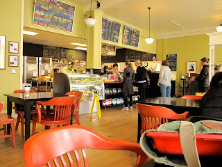 I stayed behind after Claire left to check e-mail and take a foto or two ... including this one of the counter action, chalk board menu, and some of the habitues who come to Kenwood for the "Puppy Dog Tail" cinnamon breakfast pastries, toasty warm and dripping in vanilla icing.
